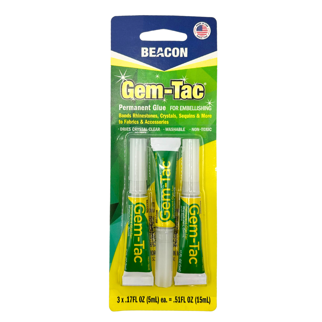 Gem-Tac is a premium quality adhesive formulated specifically to secure gems and rhinestones. One of the only adhesives that is suitable for applying mirror backed stones, as the glue won’t warp or alter the appearance of gems or rhinestones.