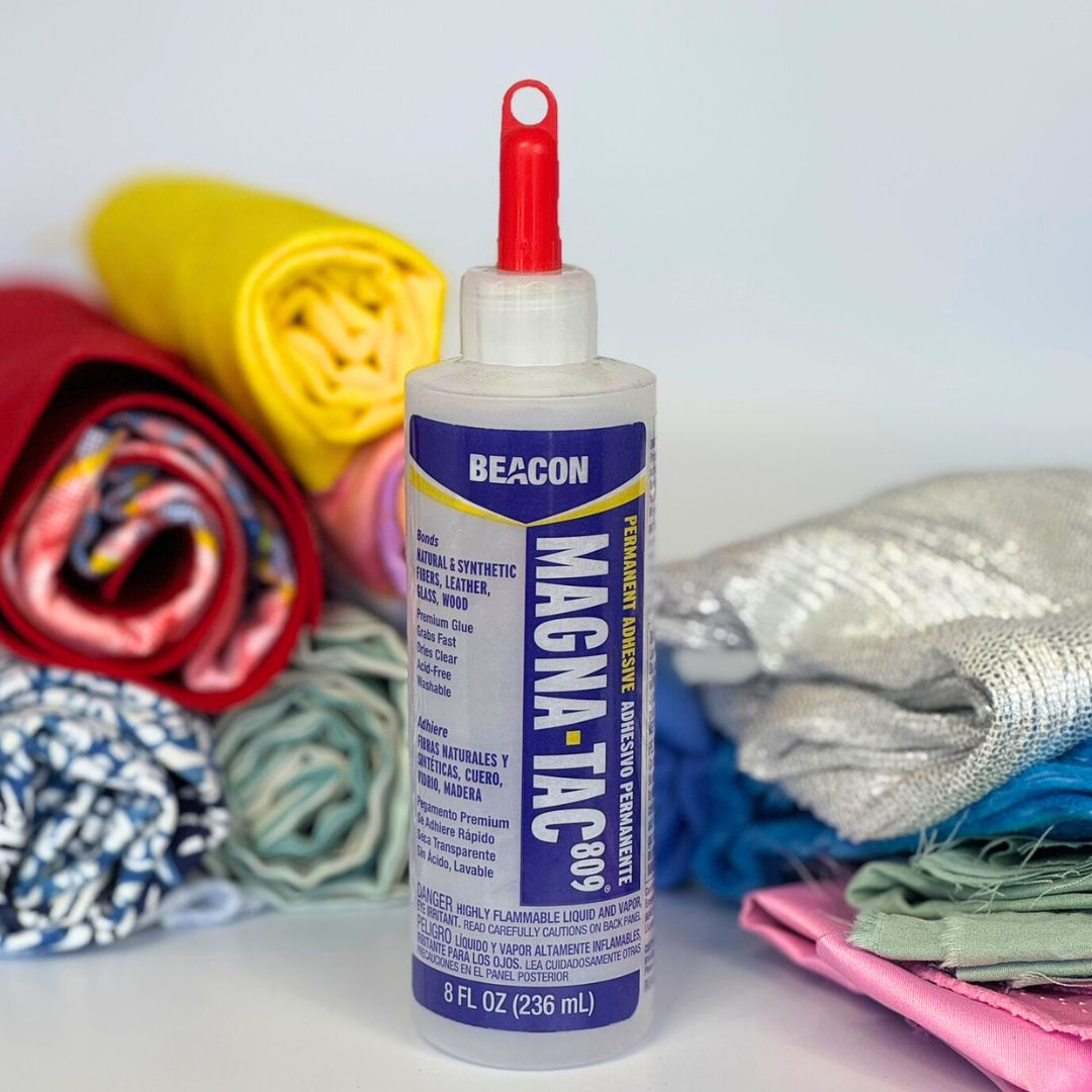 Magna-Tac 809 is a premium quality fabric glue that has been a favorite among professional designers for decades. This adhesive won’t soak into fabrics and is much easier to use than a glue gun, as there is no heat or inconvenience. MagnaTac 809 is trusted by fashion designers and loved by many! This product is used in the wedding industry, costume design, fashion, competitive dance wear, and many more areas of fabric fashion! Magna-Tac 809 is also great for practical use, keep it around in case you need to quickly hem or repair your clothes!